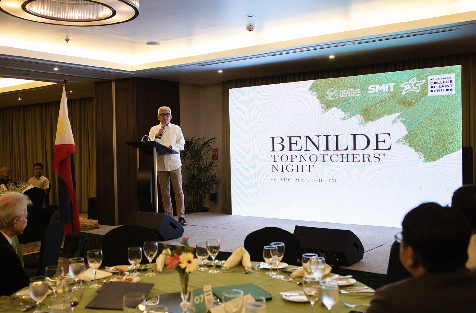A highlight of the evening was the message shared by Nathaniel K. Liu, Benilde’s most recent top achiever in the June 2024 Architecture Licensure Examination. Speaking with honesty and gratitude, Liu reflected on his journey toward becoming a Benildean architect and paid tribute to the mentors, family members, and fellow Benildeans who helped shape his path. He fondly recalled how his decision to pursue Architecture at Benilde was strengthened by an earlier connection with Architect Nielsen Bryan C. Uy, a fellow Benildean topnotcher whose story inspired him to take the leap.